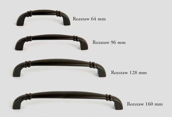 Möbelgriff in klassischer Form. Verfügbar in drei Größen, eignet er sich perfekt für klassische, elegante Möbel, Schränke und Schränkchen.