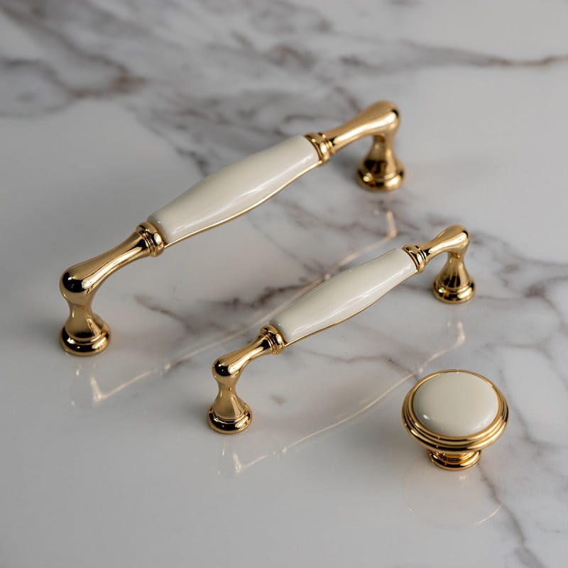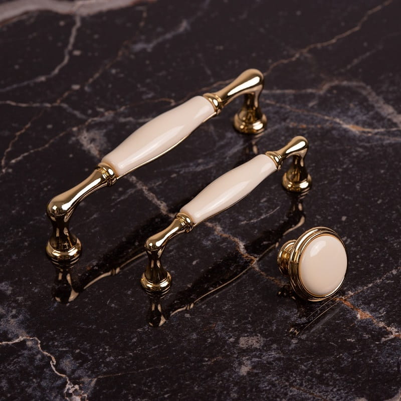 Wunderschöner Porzellan-Möbelknauf in cremeweißer Farbe. Modernes Design sorgt dafür, dass er perfekt zu Möbeln und Innenräumen im Glamour-Stil passt.