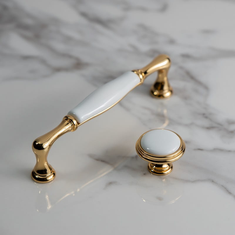 Schöner Porzellan-Möbelknopf. Modernes Design sorgt dafür, dass er perfekt zu Möbeln und Einrichtungen im Glamour-Stil passt.
