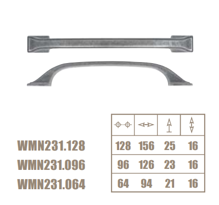 Möbelgriff w in klassischer Form. In drei Größen erhältlich ideal geeignet für klassische, elegante Möbel, Vitrinen und Schränke.