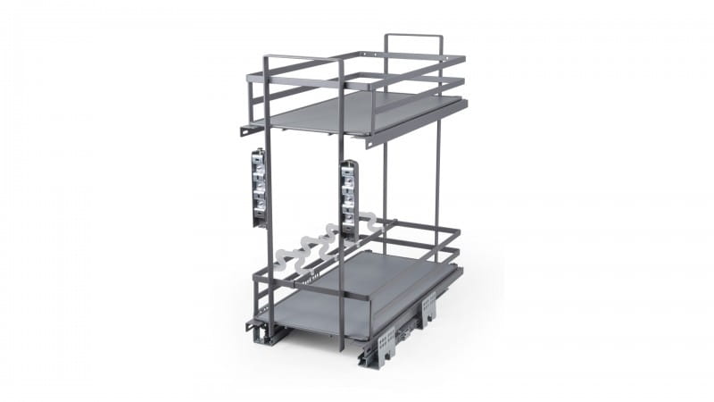 PRESCO- dwupoziomowy wysuwany kosz to stylowe rozwiązanie do przechowywania przyborów kuchennych lub domowych w modułach 300 i 400mm.