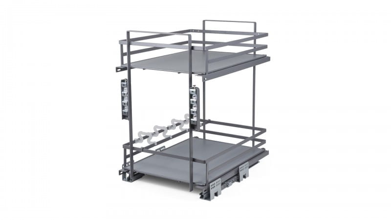 PRESCO- dwupoziomowy wysuwany kosz to stylowe rozwiązanie do przechowywania przyborów kuchennych lub domowych w modułach 300 i 400mm.