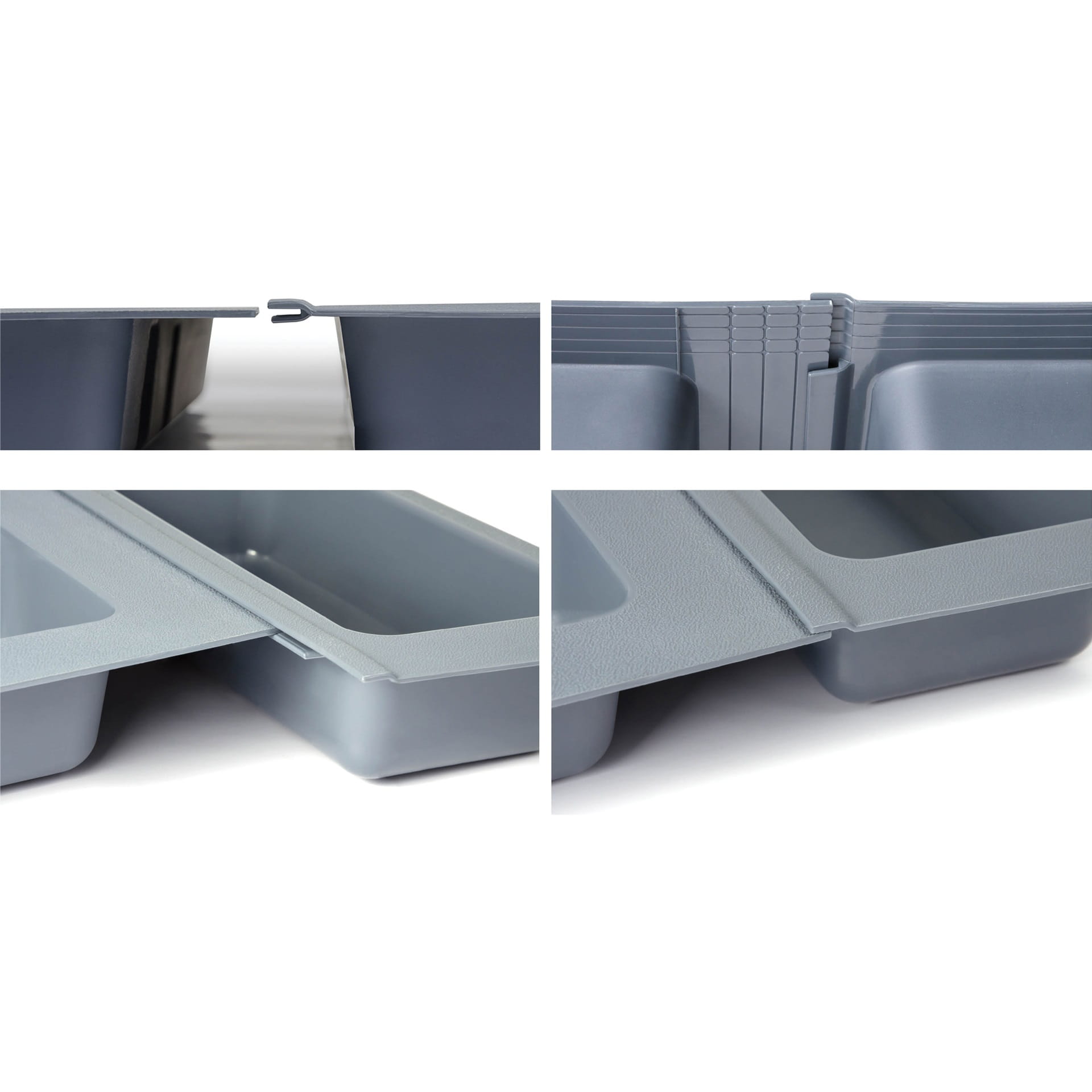 Zestaw pojemników na sztućce wykonany z przyjaznego dla środowiska polipropylenu, przeznaczony jest do modułów szuflad o szerokości 800mm i szuflad o głębokości 500mm. Zestaw ten pozwala wygodnie i schludnie ułożyć różnego rodzaju narzędzia w szufladzie.