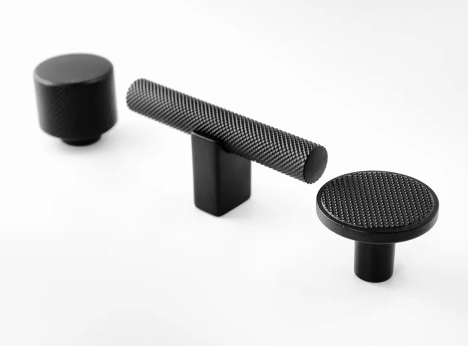 "German translation: Ponti N4 - Möbelknauf strukturiert in mattem Schwarz 16mm"