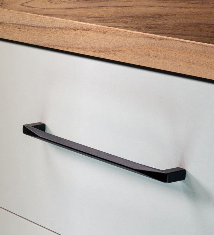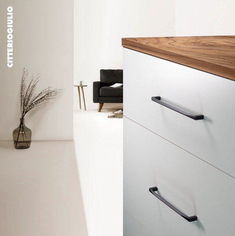 Moderner, eleganter Möbelgriff Isarco 160mm/192mm in mattschwarz. Passt sowohl zu modernen als auch zu klassischen Einrichtungen. Der Griff wurde in Italien hergestellt – Marke Citterio Giulio.