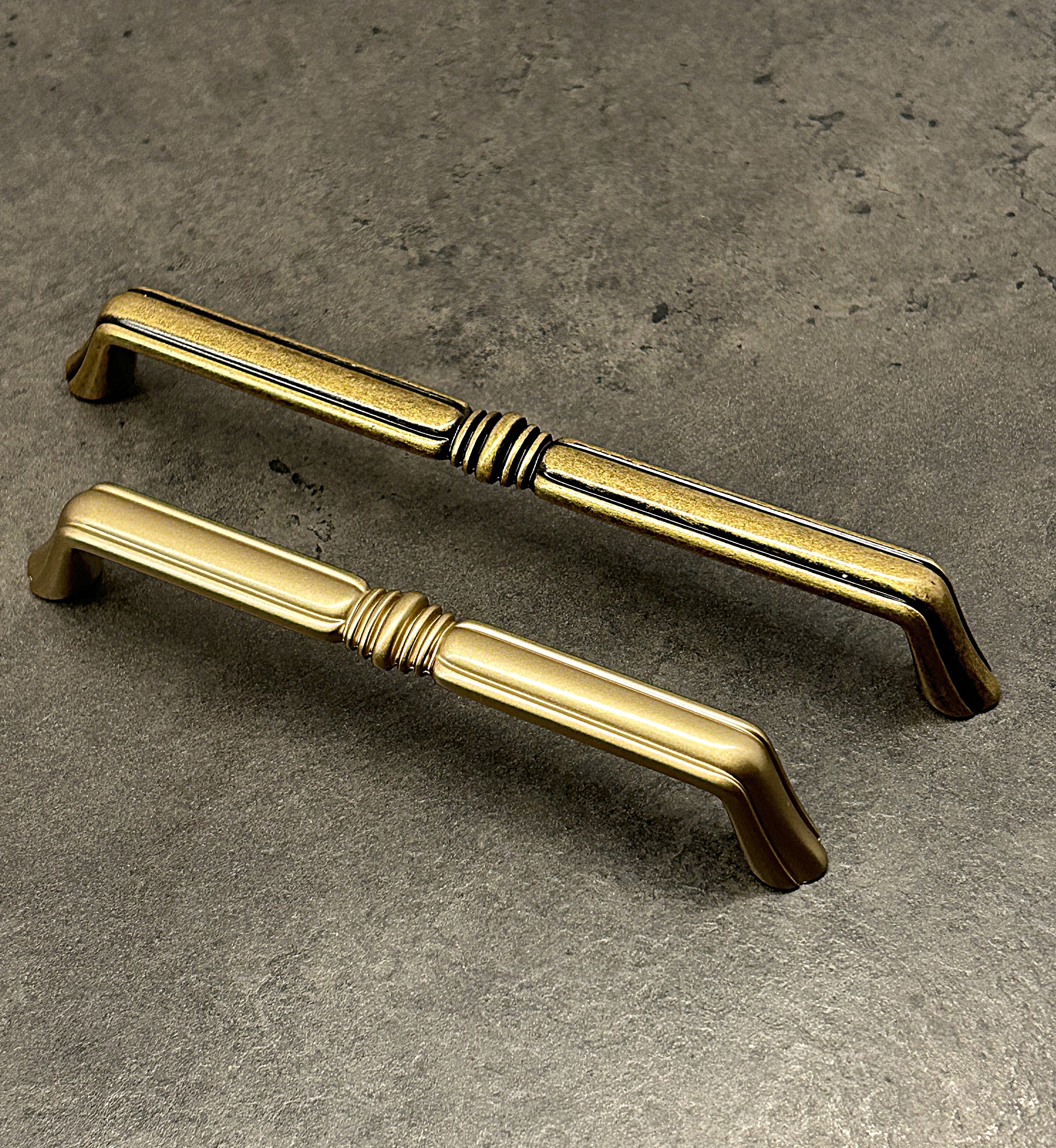 Sehr eleganter und stilvoller goldener Möbelgriff in Relingform. Ideal für Küchenmöbel, Badmöbel, Schränke und Kommoden.