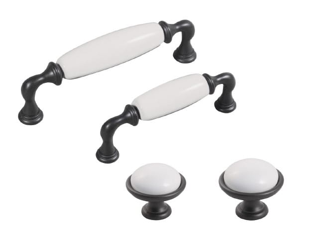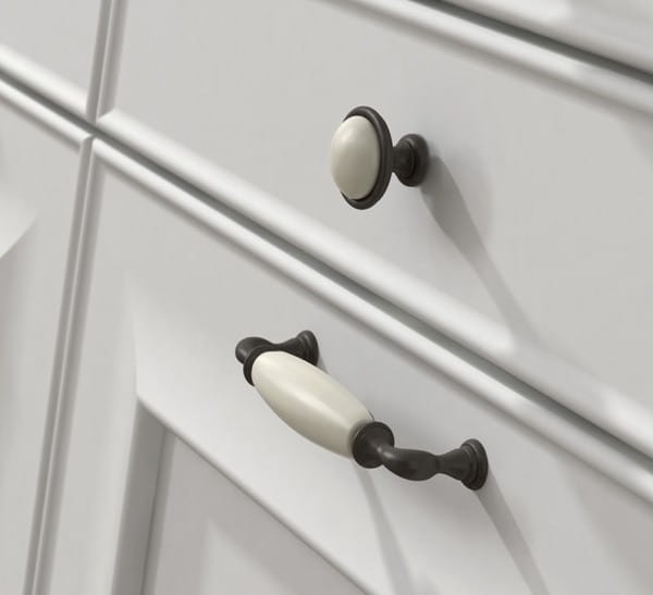Decorani 83 - graphit mit weißem Porzellan Möbelgriff 128mm