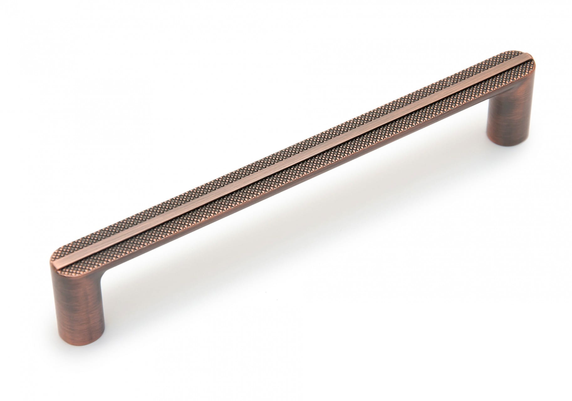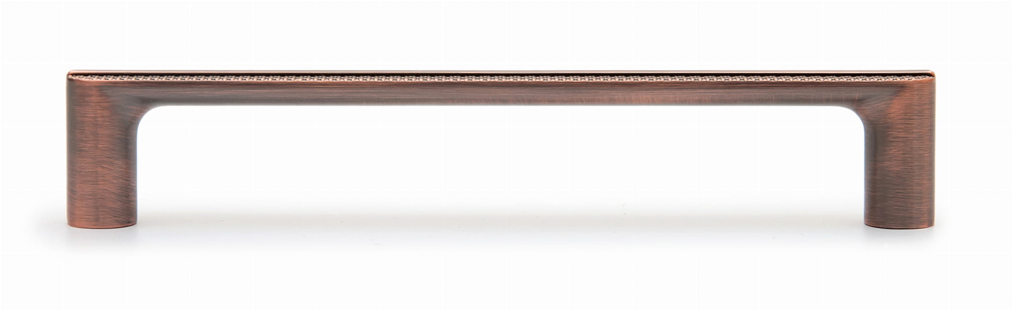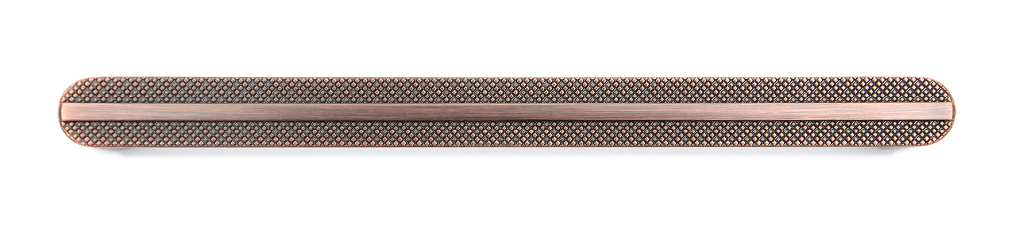 Moderner Möbelgriff mit geriffelte Struktur in der Farbe antikes Kupfer. Griff ideal für Küchenmöbel. Erhältlich in zwei Größen: 160 mm sowie 320 mm. Griff aus dem Material Znal.