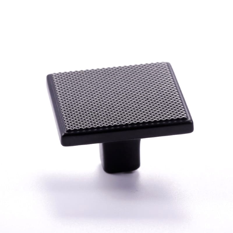 Gabio Nero - schwarze quadratische Möbelknopf geriffelt 35 mm