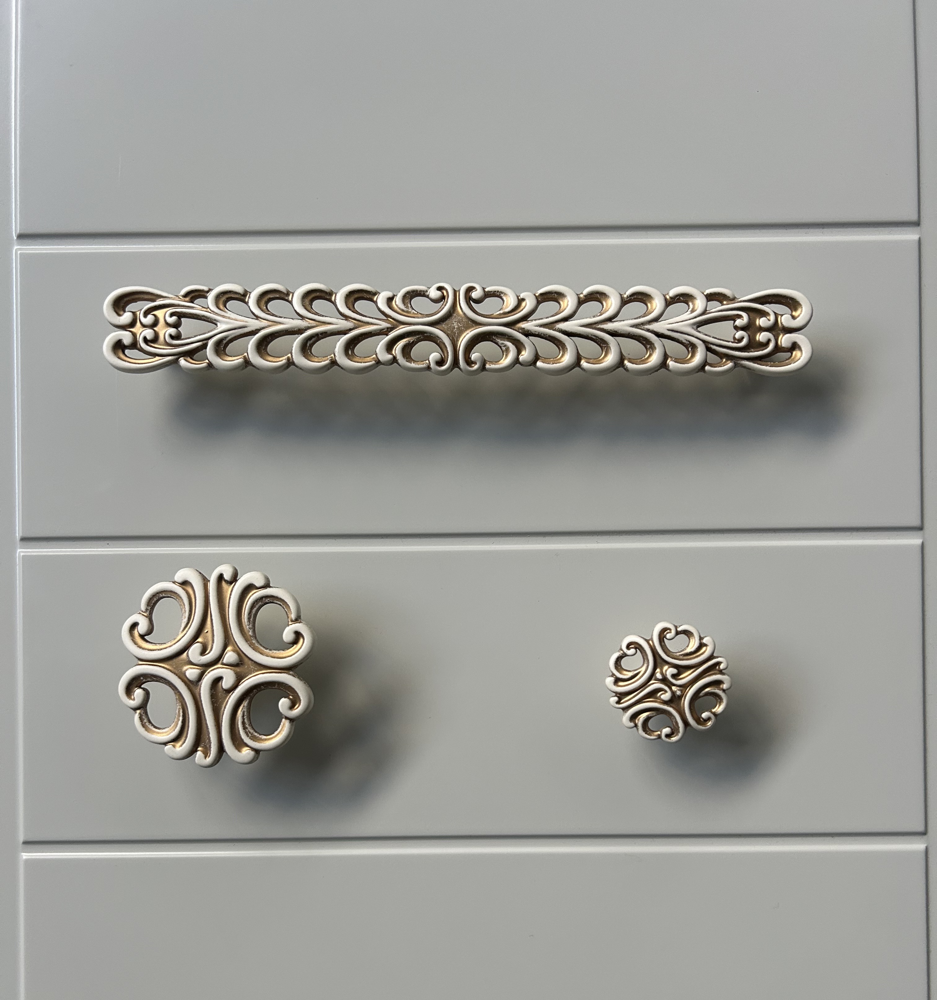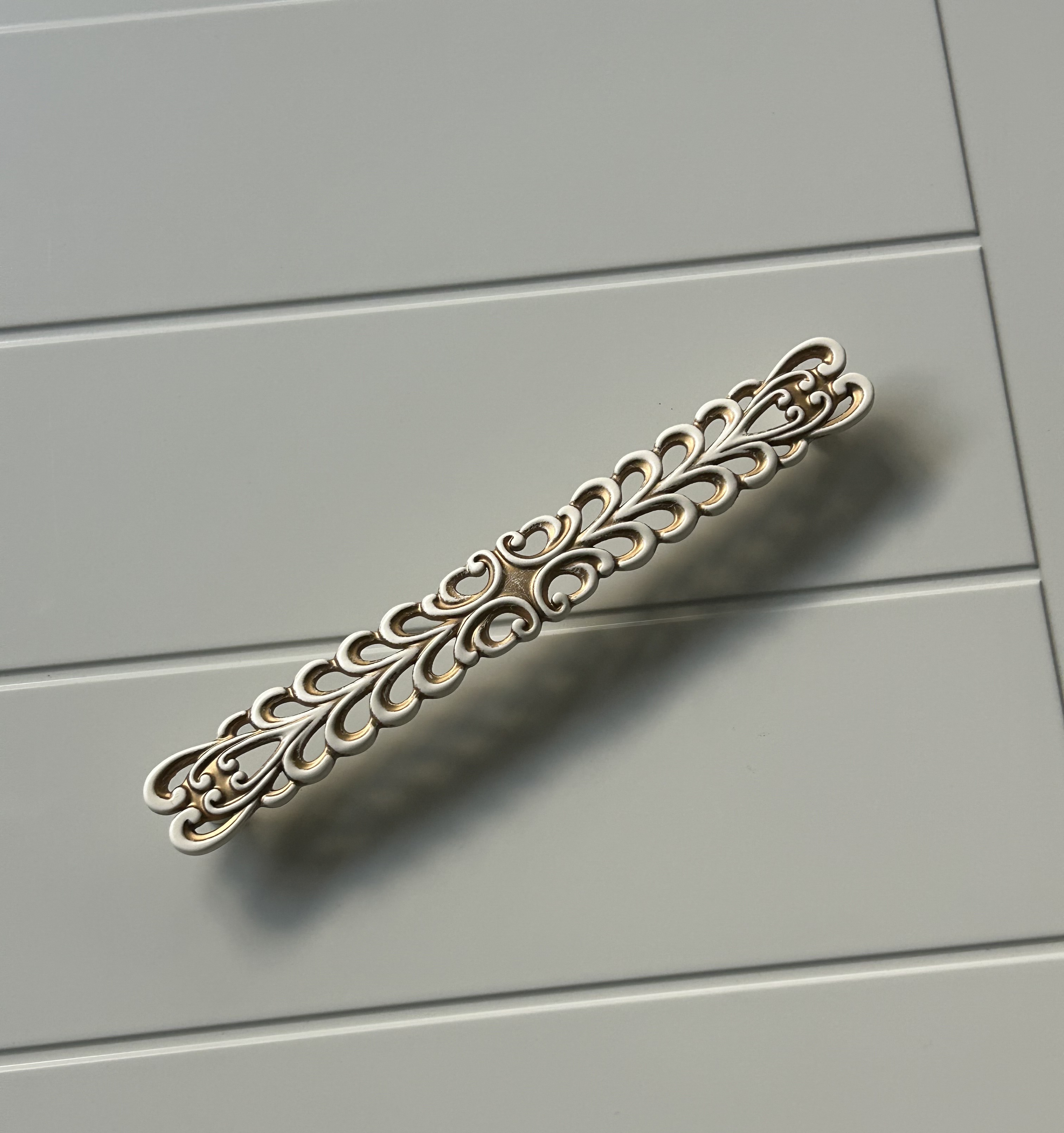 Möbelgriff in klassischer Form. Verfügbar in drei Größen eignet er sich perfekt für klassische, elegante Möbel, Schränke und Schränkchen.