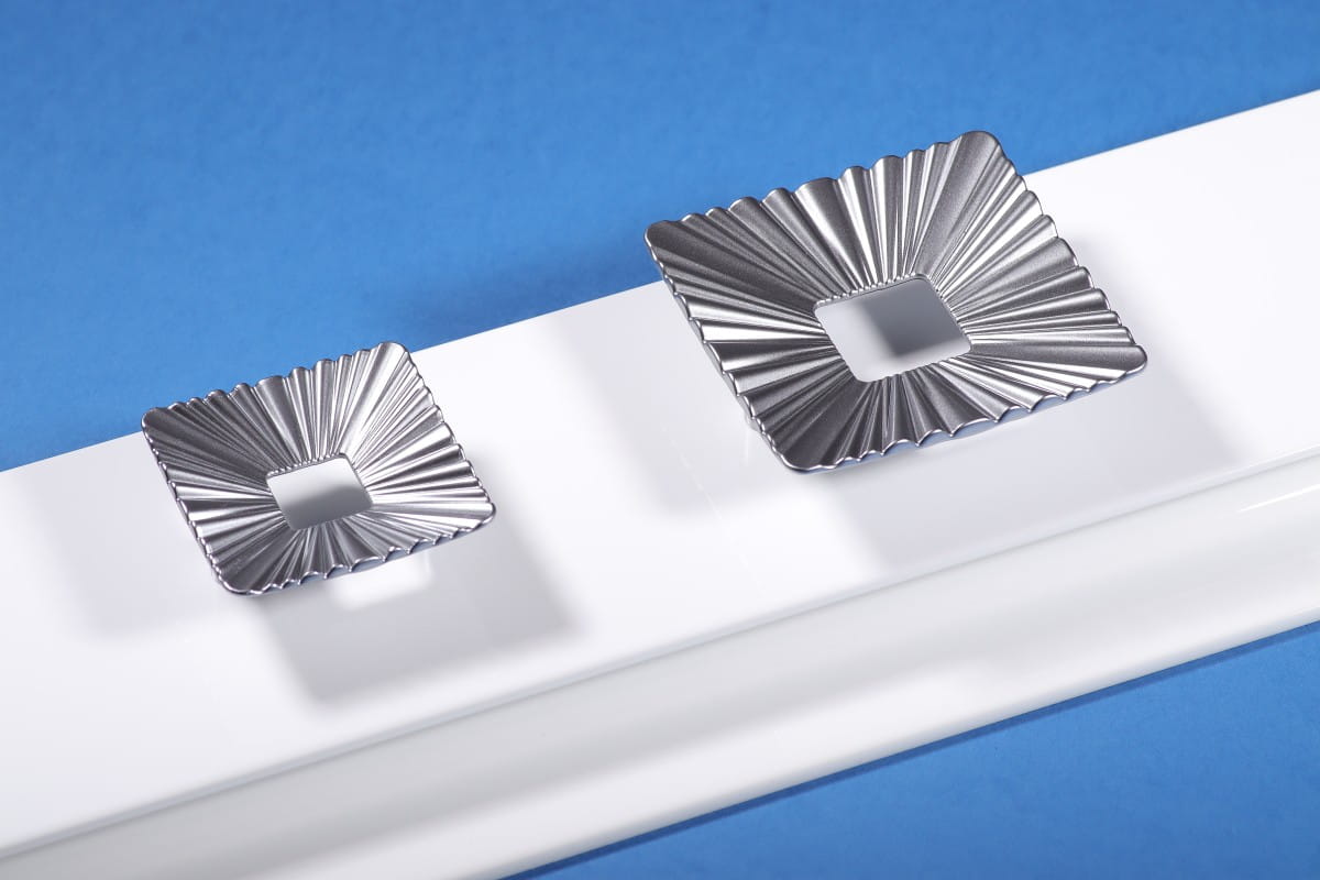 Quadratischer Möbelgriff. Verfügbar in zwei Größen. Eignet sich hervorragend für moderne, elegante Möbel, Schränke und Schränkchen.